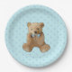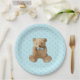 Teddy Bear Blue and Tan Polka Dotted Party Paper Plate