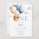 Teddy Bear Blue Balloon First Birthday Invitation