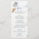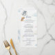 This adorable Menu design features a sweet watercolor teddy bear with soft blue balloons, fluffy clouds, and a large blue bow, creating a charming and playful look perfect for a baby boy celebration. The gentle blue tones and cute teddy bear artwork, combined with the decorative bow, make the menu both functional and stylish, fitting beautifully into the teddy bear baby shower theme.