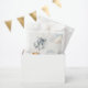 This adorable favor bag features a sweet watercolor teddy bear with soft blue balloons and fluffy clouds, creating a charming and playful design perfect for a baby boy celebration. The gentle blue tones and cute teddy bear artwork give a warm and cozy feel that beautifully matches a teddy bear baby shower theme.