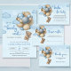 This unique Baby Shower design featured watercolor hand painted cute teddy bear with blue, beige and ivory and brown balloons , descending from the blue sky – all in modern color scheme – blue, brown and beige - makes this set suitable for a boy Baby Shower. The unforgettable sentence " We can bearly wait FOR BABY TO ARRIVE! " - which shows the excitement of parents expecting a baby, makes the design very fun and playful. Used modern calligraphy script font, further strengthens the bohemian look and gives more playful look and make invitation so stunning. The whole charming composition is set on a watercolor blue sky background and looks so remarkable. Yes, your guests will be really fascinated - send them this really impressive invitation and surely your Baby Shower Party will be remembered for a long time. In this exquisite design we have prepared all the necessary elements for your teddy bear theme for boy Baby Shower Party - such as games, welcome posters, table signs and much more, so you can get a complete set of this exceptional bohemian design with a cute teddy bear with blue, beige and brown balloons..