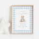 Teddy Bear Blue Gingham Baby Shower Welcome Sign