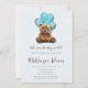 Teddy Bear Blue Gold Balloon Boy Baby Shower Invitation
