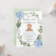 Teddy Bear blue greenery floral boy baby shower Invitation