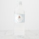 Grandmillennial Teddy Bear Water Bottle Label, featuring classic blue watercolor stripes and a vintage teddy bear