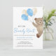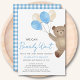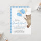 This charming baby boy's baby shower invitation features a cute watercolor teddy bear with blue and beige balloons. The back has a blue gingham check pattern. It says "We Can Bearly Wait" in stylish script calligraphy. It is easily customizable. Original Watercolor © Michele Davies.