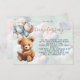Cute Teddy Bear Baby Shower invitations. Features an adorable brown boy Teddy Bear sitting and reading a book with blue and neutral colored balloons on a cloud filled background. To make more changes go to Personalize this template. On the bottom you’ll see “Want to customize this design even further? Click on the EDIT using Design tool. It will take some learning but you can change some of the fonts & some colors, move things around or delete what you need.