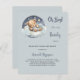 For a baby shower celebrating a baby boy. A blue gray background. A cute teddy bear sleeping on a cloud. Personalize and add the name of the mom to-be and party details. The name and the text: Oh Boy! and Bearly are written with a hand lettered style script.