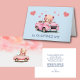 An adorable little teddy bear rides in a pink car on the front of this Baby's 1st Valentine's Day card. Pink hearts float around the image. Your custom text is in blue. The inside of the card has several custom text fields, which you may leave as is or change to your liking. A sweet image and card for that very special new baby.