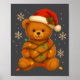 Teddy Bear Christmas Tree Lights Santa Hat For Bea Poster