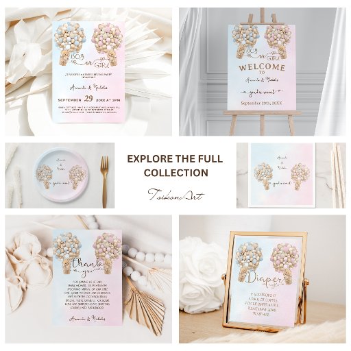 Minimal, elegant, cute gender reveal party napkins with boy 👦 girl 👧 teddy bears and pink 💗 blue 💙 balloons. This design is a mix of bohemian and modern simple themes in gender reveals. Don't forget to discover the full collection!