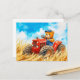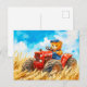 Teddy Bear Driving a Tractor in Wheat Field Postcard
