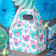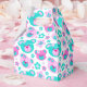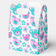 Repeat patterned girlie teddy bear faces and flowers favor boxes in pinks, aqua teal blue green and white hues. Original art and pattern design by Sarah Trett.