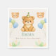 Celebrate your little one's most magical milestone with these adorable watercolor teddy bear party napkins, featuring a sweet party-hat-wearing cub surrounded by soft blue, green, and yellow balloons. The charming "One-derful First Birthday" sentiment adds a playful, heartfelt touch that perfectly captures the joy of turning one. Personalized with your child's name in elegant sage green lettering, these napkins make every table setting feel truly special. Perfect for a gender-neutral teddy bear birthday party, they blend effortlessly with soft, earthy décor for a look guests will adore.