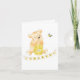 Cute teddy bear with barrel of honey looking at a honey bee and "Thank You" on a yellow banner underneath. Perfect for after a gender reveal party. Inside the card has some basic thank you note words, space for writing, and some greenery and yellow florals. Comes with a signature line as well. Honey jar on the very back.