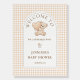 We Can Bearly Wait Gingham Baby Shower. Welcome guests in sweet, timeless style with this Teddy Bear Gingham Baby Shower Welcome Sign. Featuring a soft beige gingham background and an adorable teddy bear illustration, this neutral welcome poster is perfect for classic, gender-neutral, or teddy bear–themed baby showers. Fully customizable with the guest of honor’s name, event details, and location, this elegant sign adds a warm and charming touch to your baby shower décor—ideal for entry tables, easels, or photo backdrops.