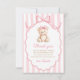 Teddy Bear Girls Pink Bow Stripes 1st Birthday Thank You Card