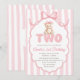 Teddy Bear Girls Pink Bow Stripes 2nd Birthday Invitation