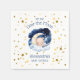 Celebrate your sweet little one's arrival with this charming, personalized 'Over the Moon Baby Shower' paper napkin, featuring a cute teddy bear asleep on a crescent moon, surrounded by a dreamy night sky in tones of navy blue. The design showcases gold stars, soft puffy dusty blue clouds to complete the twinkle twinkle celestial theme. Perfect for adding a touch of whimsy and elegance to your Teddy Bear Baby Shower decor, this paper napkin is a delightful choice for your over the moon celebration!