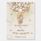 Get ready for a "teddy-riffic" baby shower! This adorable bear themed baby shower welcome sign features a cuddly teddy bear soaring through a sky of fluffy beige clouds ☁️ in a majestic gold hot air balloon . Gold stars ⭐️ twinkle all around, adding a touch of magic to this gender-neutral baby showers. Easily personalize your design with customizable template fields and change the background color in our design tool. Check out our matching items below the product. For design assistance, message us via Zazzle.
