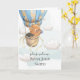 A sweet baby teddy personalized baby card for a little boy or girl. This invitation design features an adorable teddy bear flying high in a hot air balloon! Super sweet and all text is fully customizable. Click the "Customize it!" button to change the text size, text color, font style and more!