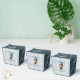 Create unique baby shower favor boxes featuring blue colors, and a casual chic teddy bear with gingham and balloons. The front includes the event name and guest of honor that you can edit for your needs. Bear Jean Baby design. Use the template to create a special, personalized favor boxes for your baby shower.