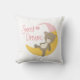 A sweet pillow choice for baby's nursery, this design features a cute teddy bear resting on a crescent moon in a pink hat and the text "Sweet Dreams". This pillow is also available in blue.