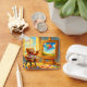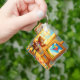 This keychain has a teddy bear painting pictured on it.