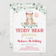 Teddy Bear Picnic Greenery Floral Birthday Invitation