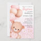 Teddy Bear Pink Balloons Gold Stars Baptism Invitation