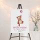 A girl baby shower welcome sign featuring a teddy bear and pink balloon. Matching items available in the Teddy Bear Baby Shower Theme collection.