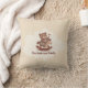 A pillow with an illustration of a wooden toy: a smiling teddy bear riding a rocking horse in warm tones against a soft, stained background. The bear wears a tiny craftsman's apron and holds a small wooden tool. A nice gift idea for a family or a kid!