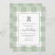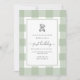 Teddy Bear Sage Gingham 1st Birthday Invitation
