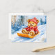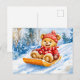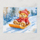 Teddy Bear Sledding Downhill in Winter Postcard