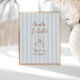 “We can bearly wait” Celebrate the mom-to-be with this cute hand drawn baby shower books and gifts sign featuring a tan colored line art drawing of a teddy bear and a soft blue vertical striped background.