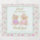 Send your baby shower guests home with this adorable and girly chic custom mini sparkling wine bottle label that reads "Pop it when she pops!" The label is customizable, to edit the text click "personalize this template". This custom sparkling wine label features a mint green tea party background and a hand drawn illustration of two teddy bears dressed in fancy dresses and sipping tea from cute pink tea cups. This makes for a fun and unique baby shower party favor and take home gift!