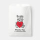 This favor bag features a teddy bear with a heart that includes the birthday age above the Thank You . All text can be customized to fit your event. The number of the birthday can be added to the heart or left blank.