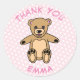 Teddy Bear Thank You Name Dots Pink Classic Round Sticker