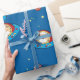 A cute teddy bear in a flying saucer UFO is zooming around in outer space. Adorable wrapping paper for your little astronaut!