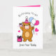 A cute and charming birthday card featuring a brown teddy bear surrounded by pink and raspberry balloons and colorful gifts, perfect for a little girl’s special day. Sweet, playful, and heartwarming, this design brings smiles, hugs, and birthday joy. Ideal for children’s birthdays, it’s a delightful way to celebrate a little one with love and fun.