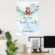 The watercolor cute teddy bear swinging on a eucalyptus wreath with dusty blue flowers is a charming theme for a boy baby shower. This design can be used for a welcome porch sign or a large format poster, creating a whimsical and welcoming atmosphere for the celebration. The soft colors and adorable imagery make it a perfect choice for a sweet and memorable event.