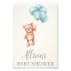 This adorable watercolor illustration of a brown teddy bear with blue balloons in a minimalistic theme.
