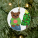 Teddy Bear with Christmas Tree Ceramic Ornament