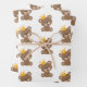 This wrapping paper features a friendly pattern of brown teddy bears. Each bear is smiling and wears a bright golden crown with small colorful details. The bears are set against a clean white background, making the design look bright and happy. It is a perfect choice for birthdays, baby showers, or any special occasion for children. The neutral colors and cute characters make it easy to use for any gift, adding a fun and royal touch to your presents.