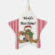 World's Best Nana customizable teddy bear design keepsake holiday ornament features a teddy bear with holiday lights and a stocking cap and an area on the back of the ornament where you can easily personalize it with a name and year or date or other text!