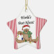 World's Best Niece customizable teddy bear design keepsake holiday ornament features a teddy bear with holiday lights and a stocking cap and an area on the back of the ornament where you can easily personalize it with a name and year or date or other text!