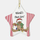 World's Best Son customizable teddy bear design keepsake holiday ornament features a teddy bear with holiday lights and a stocking cap and an area on the back of the ornament where you can easily personalize it with a name and year or date or other text!