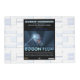 On one side a poster for a non-existent science fiction movie in which human and teddy bear astronauts meet aliens in a far-off part of the galaxy. Features a teddy bear floating in space over the movie's title "Bogon Flux." We've got company." The poster is superimposed on a starry background. On the other side the same poster is superimposed on a background image resembling spacecraft hull plates.