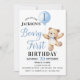Teddy Blue Balloon Beary First Birthday Invitation