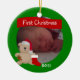 This Teddy First Christmas Ornament features mouse drawn art. Makes a great holiday gift for new parents. Customize with your own photo and text.